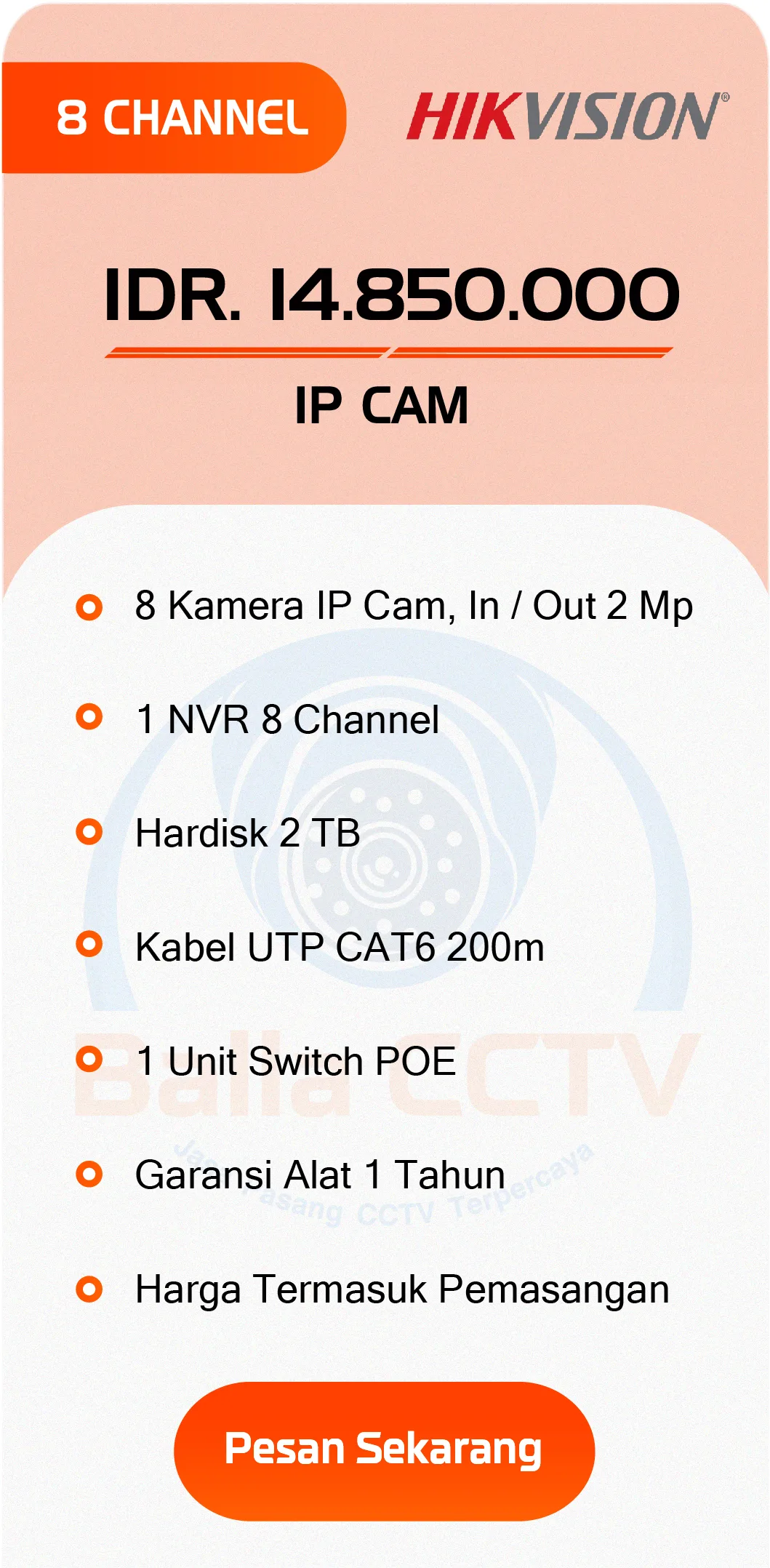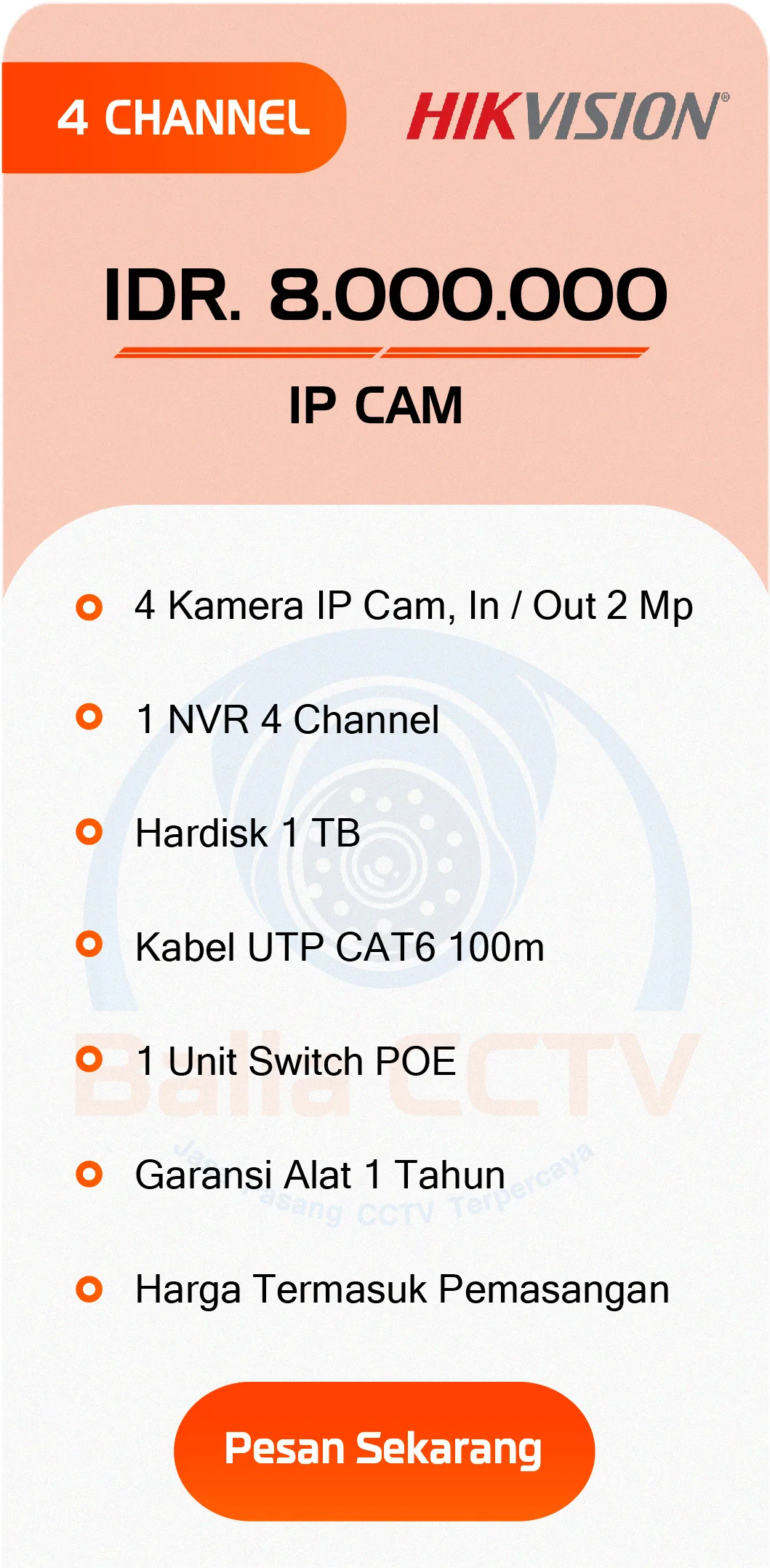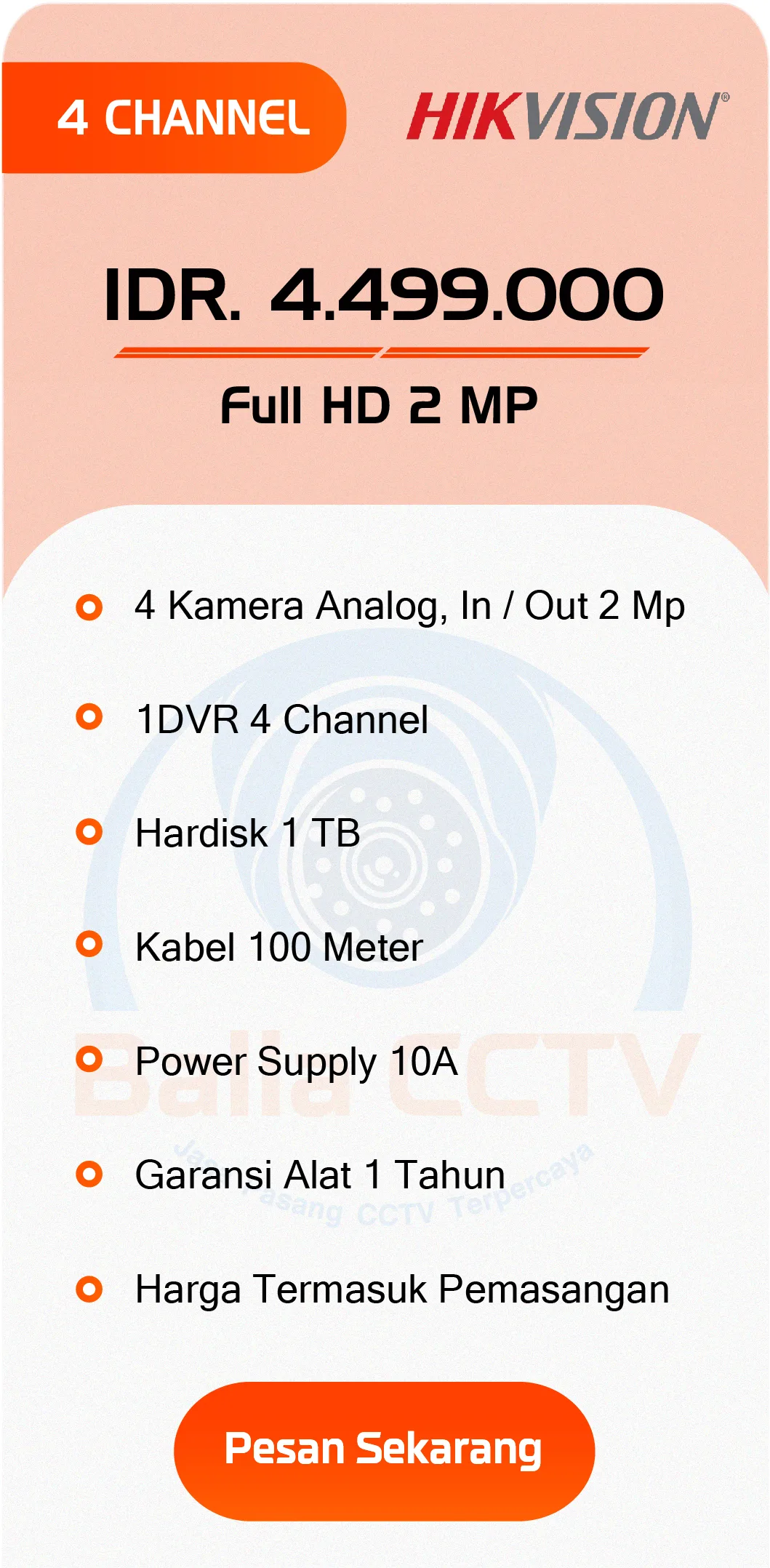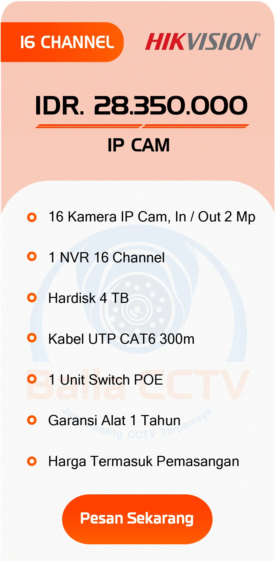 Paket Hikvision CCTV Analog CCTV Audio CCTV ColorVu CCTV IP CAM PAKET CCTV DAHUA PAKET CCTV HIKVISION PAKET CCTV HILOOK PAKET CCTV EZVIZ PAKET CCTV IMOU